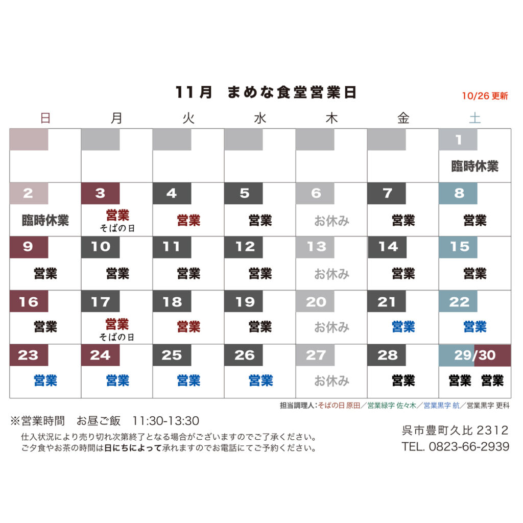 ※10月29日から11月2日は臨時休業とさせていただきます。